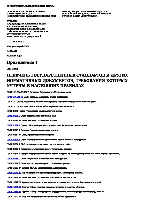 ВСН 34-91/МТ-ст: Правила производства и приемки работ на строительстве новых, реконструкции и расширении действующих гидротехнических морских и р
