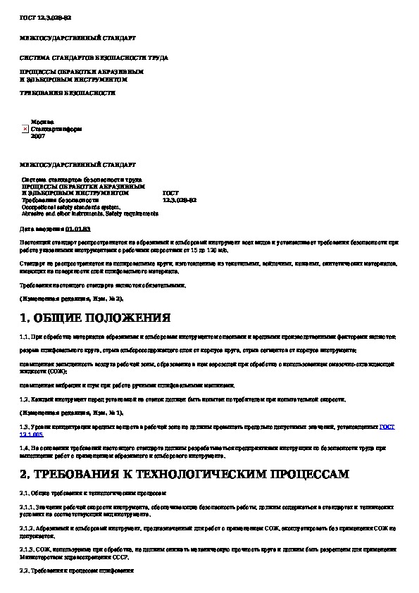Наша цель состоит в том, чтобы предоставить вам быстрый доступ к содержанию документа Система стандартов безопасности труда. Процессы обработки абразивным и эльборовым инструментом. Требования безопасности.