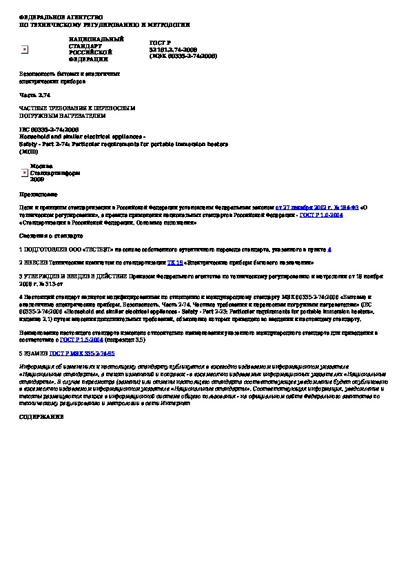 Наша цель состоит в том, чтобы предоставить вам быстрый доступ к содержанию документа Безопасность бытовых и аналогичных электрических приборов. Часть 2.74. Частные требования к переносным погружным нагревателям.
