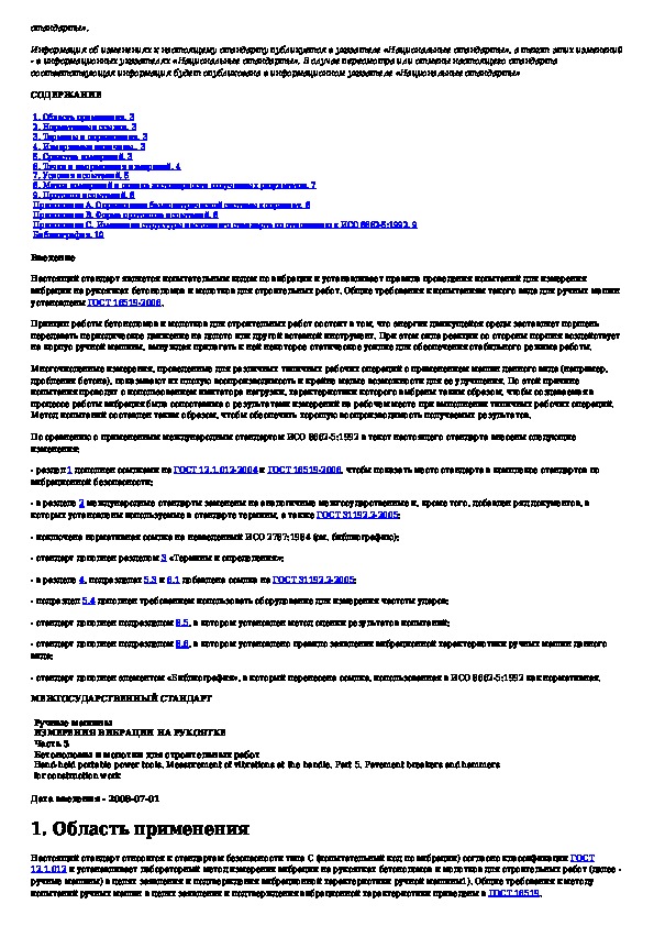 Наша цель состоит в том, чтобы предоставить вам быстрый доступ к содержанию документа Ручные машины. Измерения вибрации на рукоятке. Часть 5. Бетоноломы и молотки для строительных работ.
