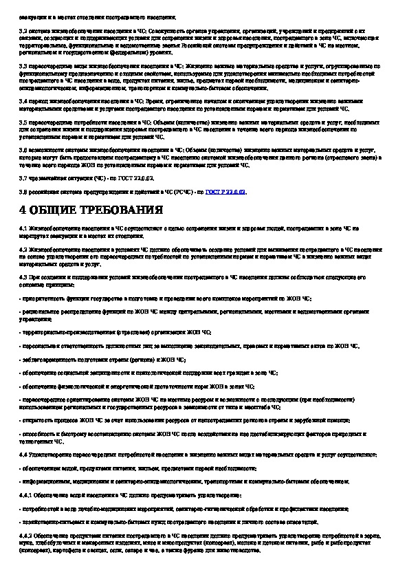 Безопасность в чрезвычайных ситуациях. Жизнеобеспечение населения в чрезвычайных ситуациях. Общие требования