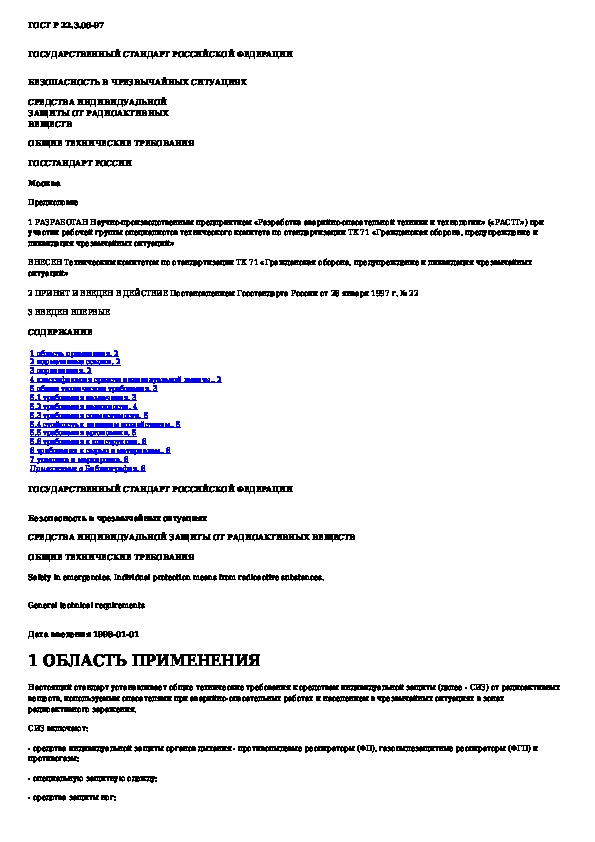 Наша цель состоит в том, чтобы предоставить вам быстрый доступ к содержанию документа Безопасность в чрезвычайных ситуациях. Средства индивидуальной защиты от радиоактивных веществ. Общие технические требования.