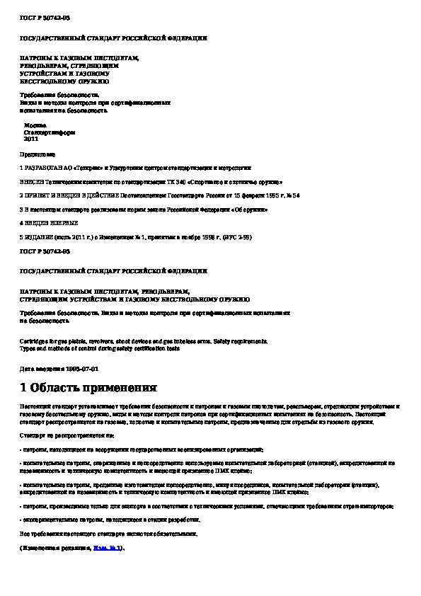 • Просмотр в полноэкранном режиме - легко просмотреть документ Патроны к газовым пистолетам, револьверам, стреляющим устройствам и газовому бесствольному оружию. Требования безопасности. Виды (без загрузки его на свой компьютер).