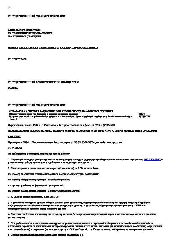 ГОСТ 23765-79: Аппаратура контроля радиационной безопасности на атомных станциях. Общие технические требования к каналу передачи данных