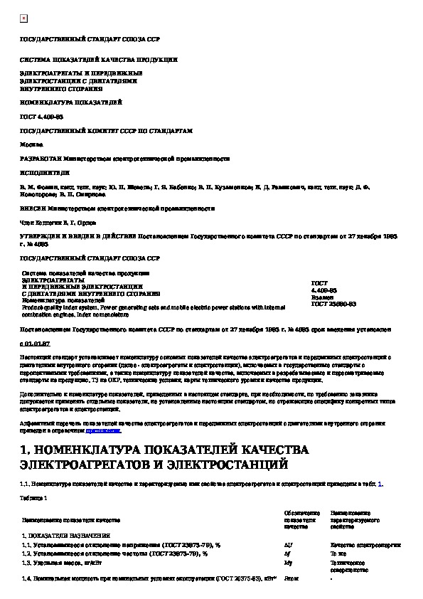 Наша цель состоит в том, чтобы предоставить вам быстрый доступ к содержанию документа Система показателей качества продукции. Электроагрегаты и передвижные электростанции с двигателями внутреннего сгорания. Номенк.