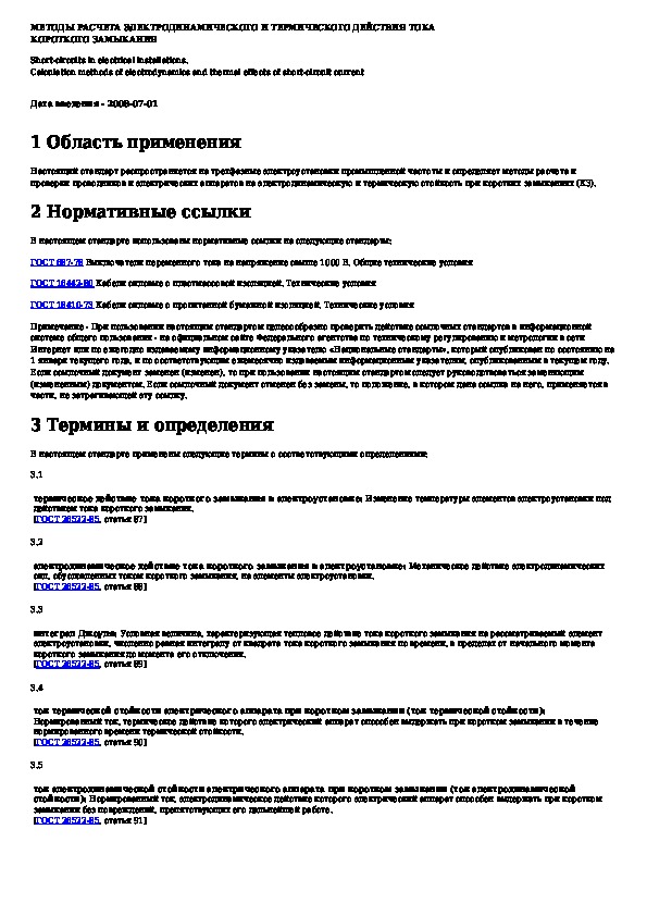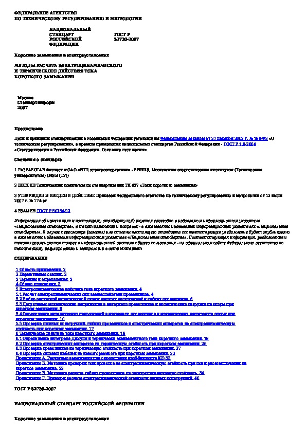 ГОСТ Р 52736-2007: Короткие замыкания в электроустановках. Методы расчета электродинамического и термического действия тока короткого замыкания