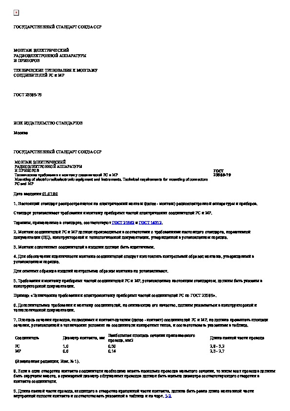 ГОСТ 23589-79: Монтаж электрический радиоэлектронной аппаратуры и приборов. Технические требования к монтажу соединителей РС и МР