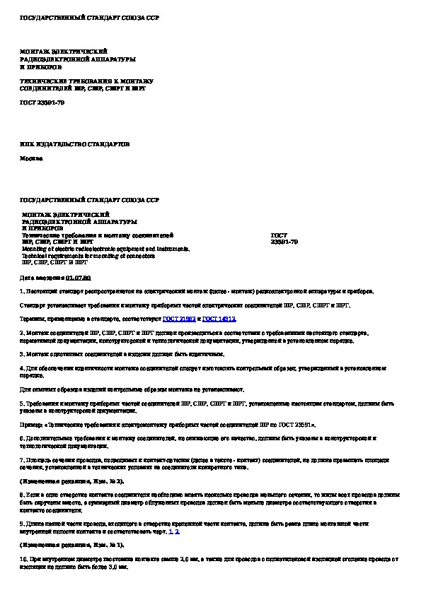 ГОСТ 23591-79: Монтаж электрический радиоэлектронной аппаратуры и приборов. Технические требования к монтажу соединителей ШР, СШР, СШРГ и ШРГ