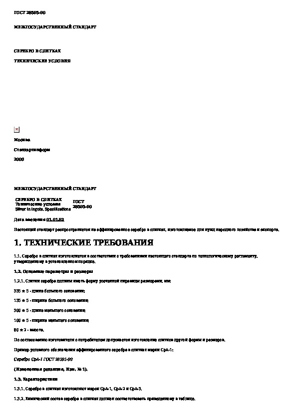 ГОСТ 28595-90: Серебро в слитках. Технические условия