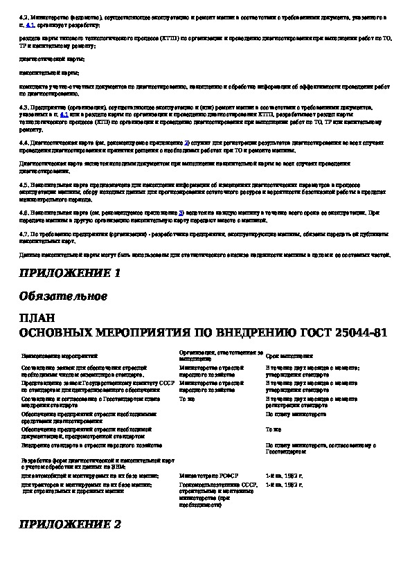 ГОСТ 25044-81: Техническая диагностика. Диагностирование автомобилей, тракторов, сельскохозяйственных, строительных и дорожных машин. Основные