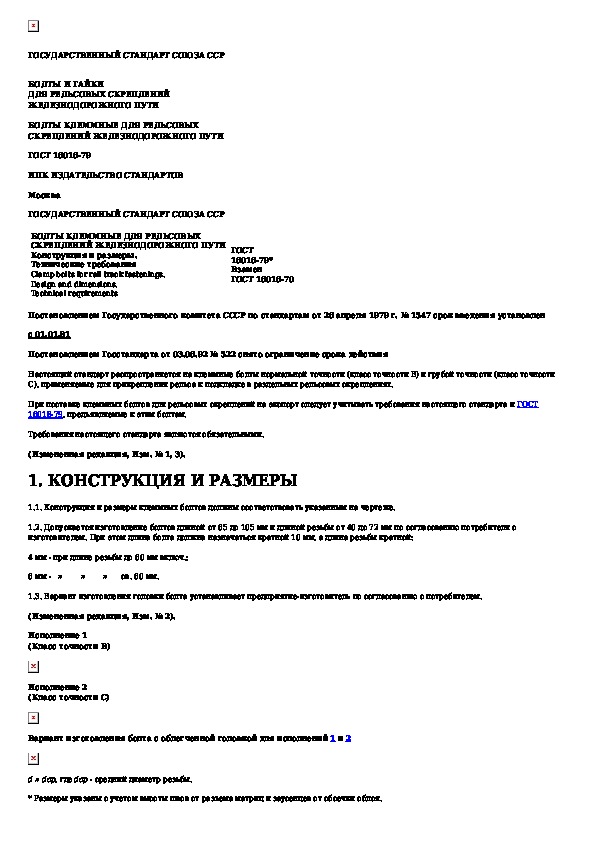 ГОСТ 16016-79: Болты клеммные для рельсовых скреплений железнодорожного пути. Конструкция и размеры. Технические требования
