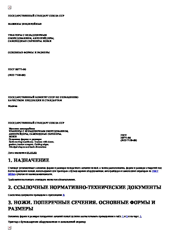 Наша цель состоит в том, чтобы предоставить вам быстрый доступ к содержанию документа Машины землеройные. Тракторы с бульдозерным оборудованием, автогрейдеры, самоходные скреперы. Ножи. Основные формы и размеры.