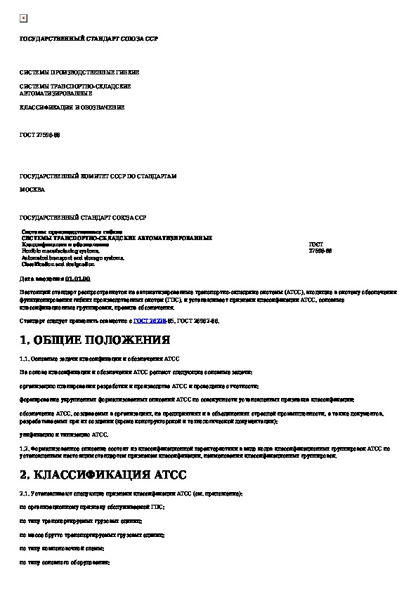 ГОСТ 27596-88: Системы производственные гибкие. Системы транспортно-складские автоматизированные. Классификация и обозначение