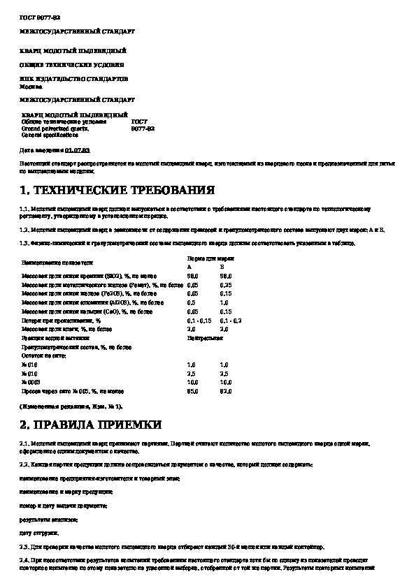 Наша цель состоит в том, чтобы предоставить вам быстрый доступ к содержанию документа Кварц молотый пылевидный. Общие технические условия.