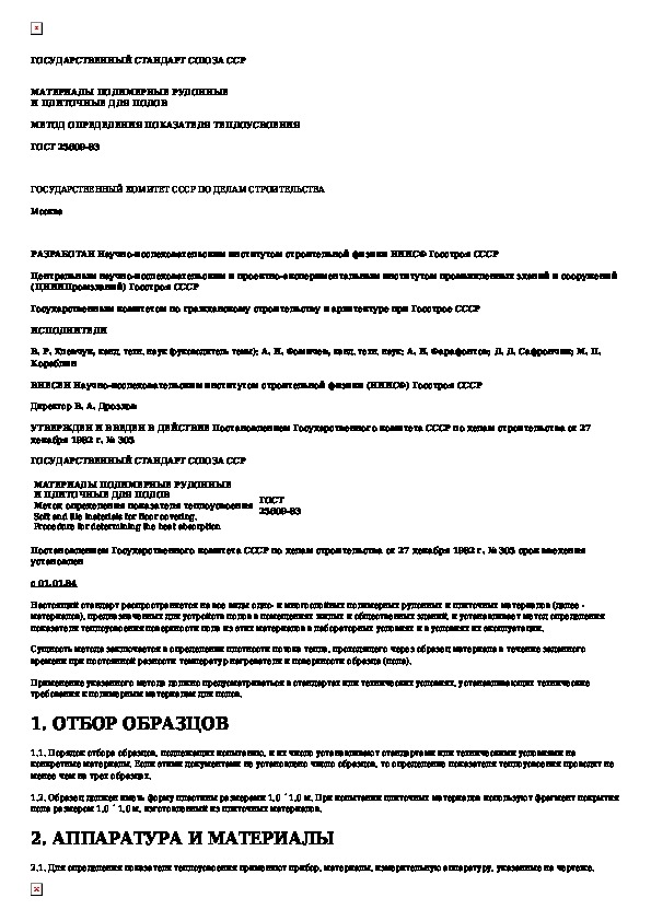 ГОСТ 25609-83: Материалы полимерные рулонные и плиточные для полов. Метод определения показателя теплоусвоения
