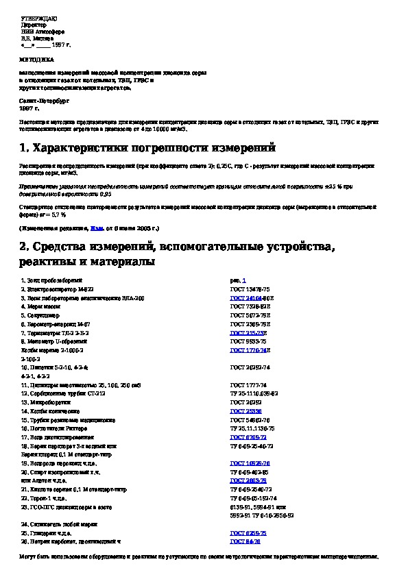 Наша цель состоит в том, чтобы предоставить вам быстрый доступ к содержанию документа Методика выполнения измерений массовой концентрации диоксида серы в отходящих газах от котельных, ТЭЦ, ГРЭС и других топливосжига.