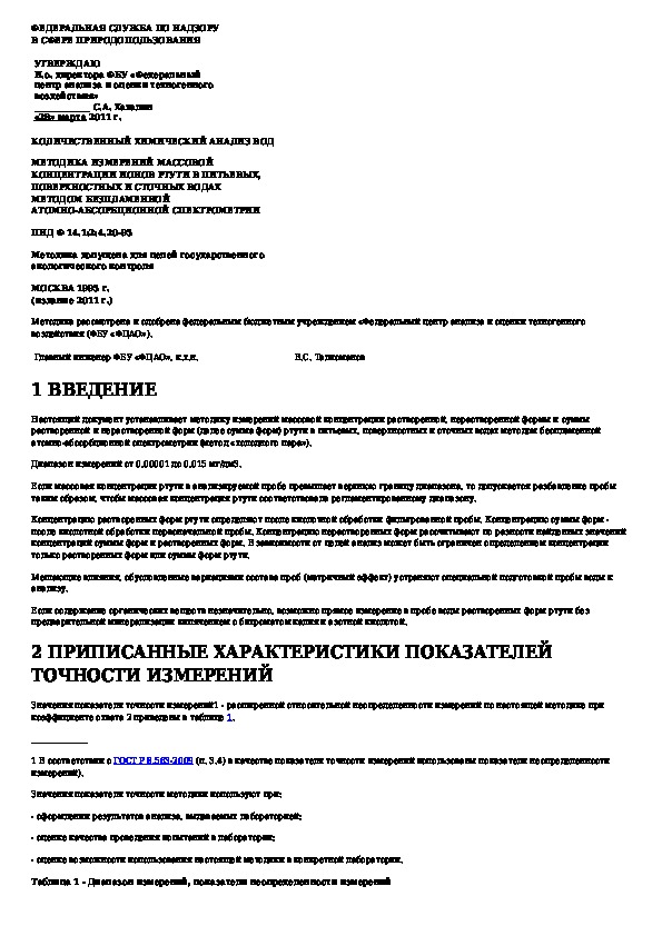 Наша цель состоит в том, чтобы предоставить вам быстрый доступ к содержанию документа Количественный химический анализ вод. Методика измерений массовой концентрации ионов ртути в питьевых, поверхностных и сточных в.