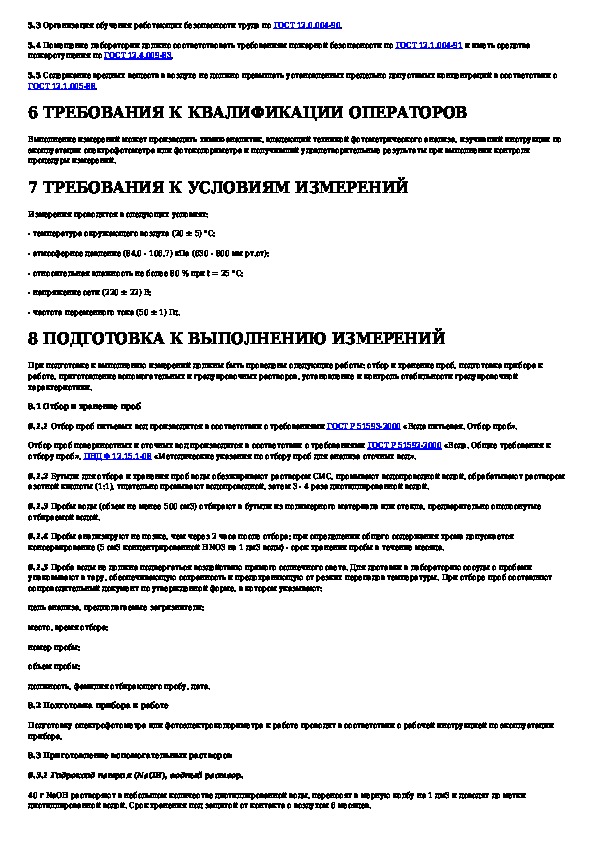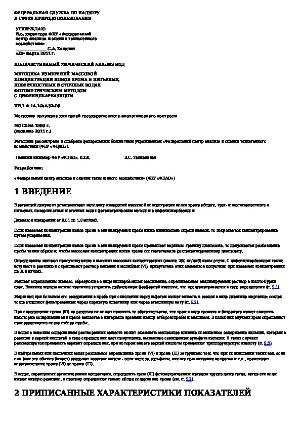 Наша цель состоит в том, чтобы предоставить вам быстрый доступ к содержанию документа Количественный химический анализ вод. Методика измерений массовой концентрации ионов хрома в питьевых, поверхностных и сточных в.