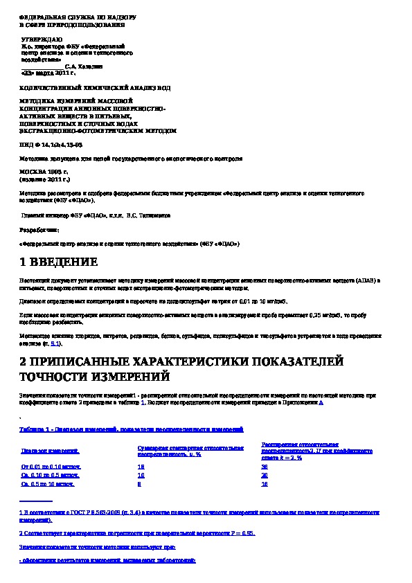 Наша цель состоит в том, чтобы предоставить вам быстрый доступ к содержанию документа Количественный химический анализ вод. Методика измерений массовой концентрации анионных поверхностно-активных веществ в питьевы.