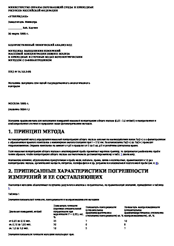 Наша цель состоит в том, чтобы предоставить вам быстрый доступ к содержанию документа Количественный химический анализ вод. Методика выполнения измерений массовой концентрации общего железа в природных и сточных во.