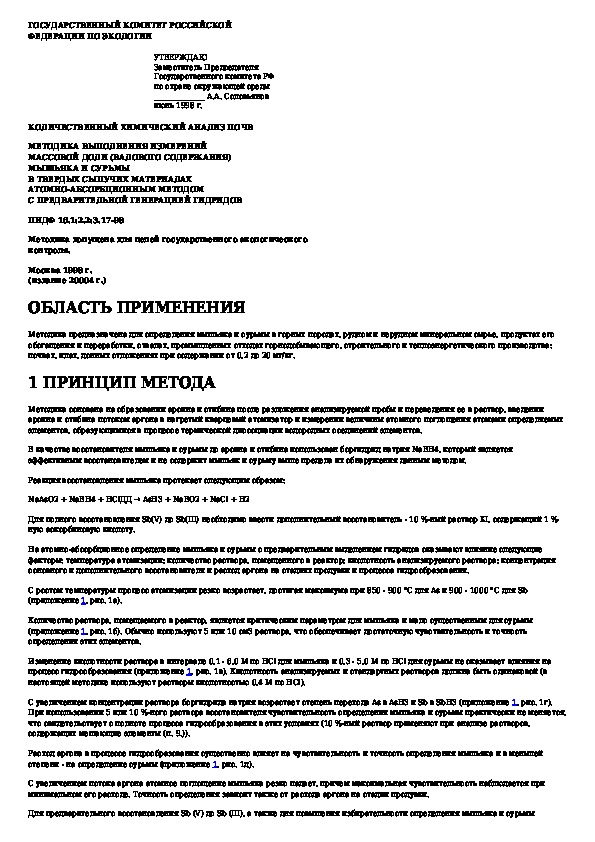 Наша цель состоит в том, чтобы предоставить вам быстрый доступ к содержанию документа Количественный химический анализ почв. Методика выполнения измерений массовой доли (валового содержания) мышьяка и сурьмы в тверд.