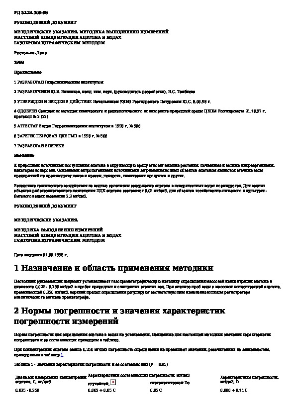 Наша цель состоит в том, чтобы предоставить вам быстрый доступ к содержанию документа Методические указания. Методика выполнения измерений массовой концентрации ацетона в водах газохроматографическим методом.