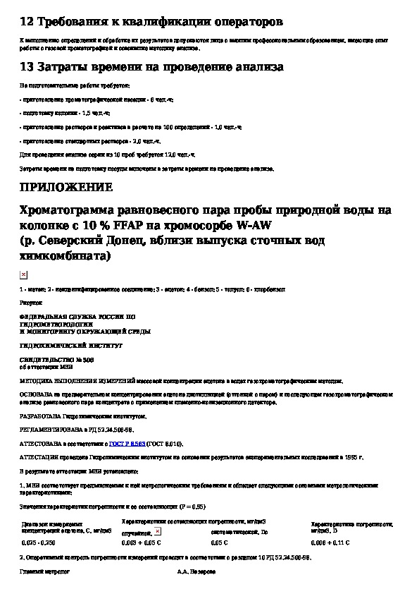 Методические указания. Методика выполнения измерений массовой концентрации ацетона в водах газохроматографическим методом