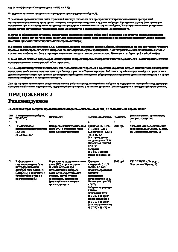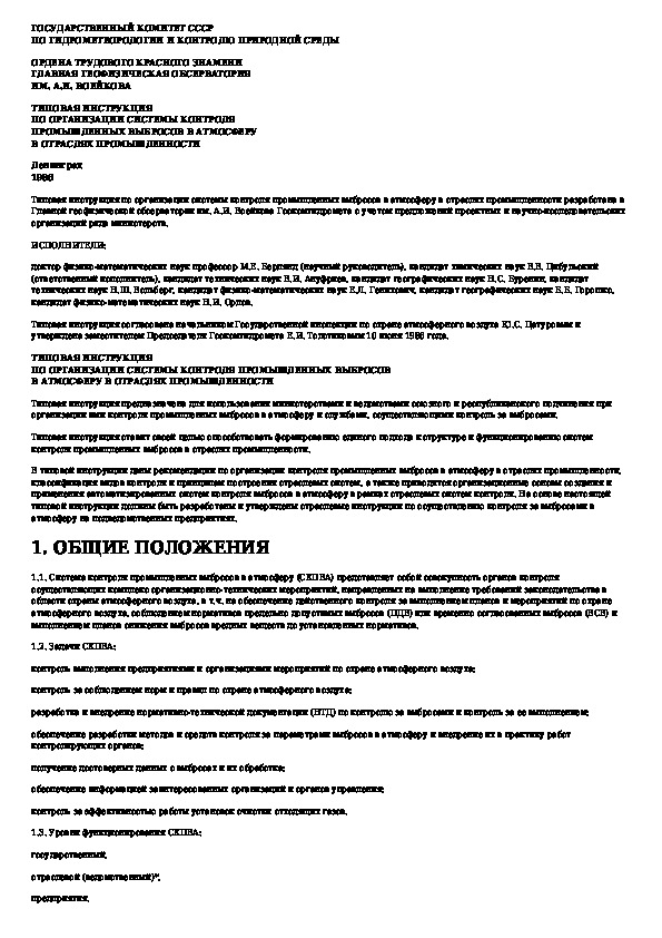 Типовая инструкция по организации системы контроля промышленных выбросов в атмосферу в отраслях промышленности