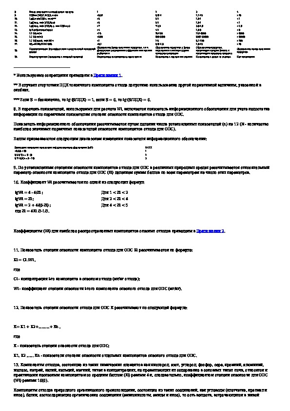 Критерии отнесения опасных отходов к классу опасности для окружающей природной среды
