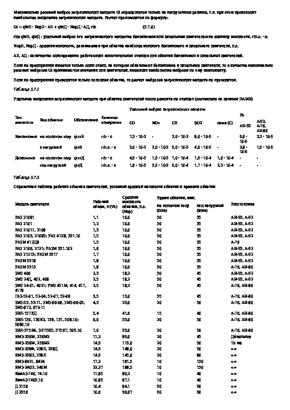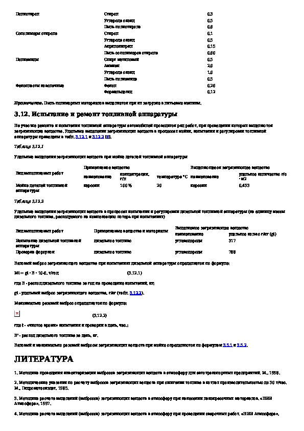 Методика проведения инвентаризации выбросов загрязняющих веществ в атмосферу для авторемонтных предприятий (расчетным методом)