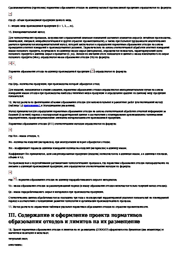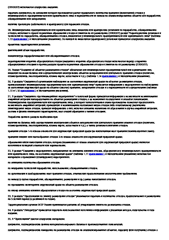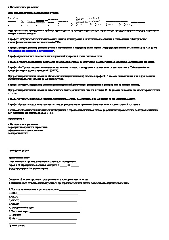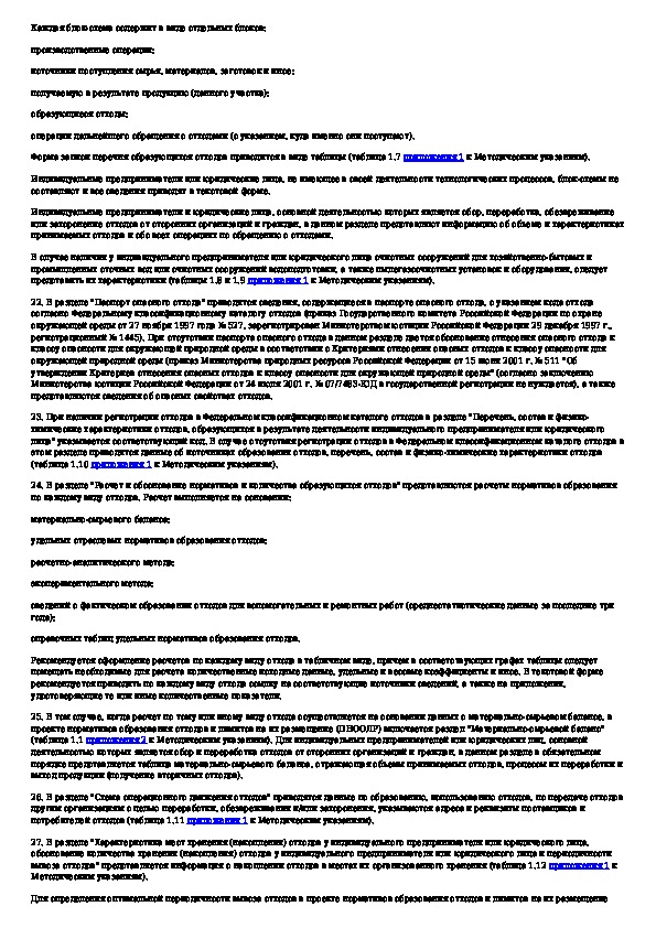 Методические указания по разработке проектов нормативов образования отходов и лимитов на их размещение