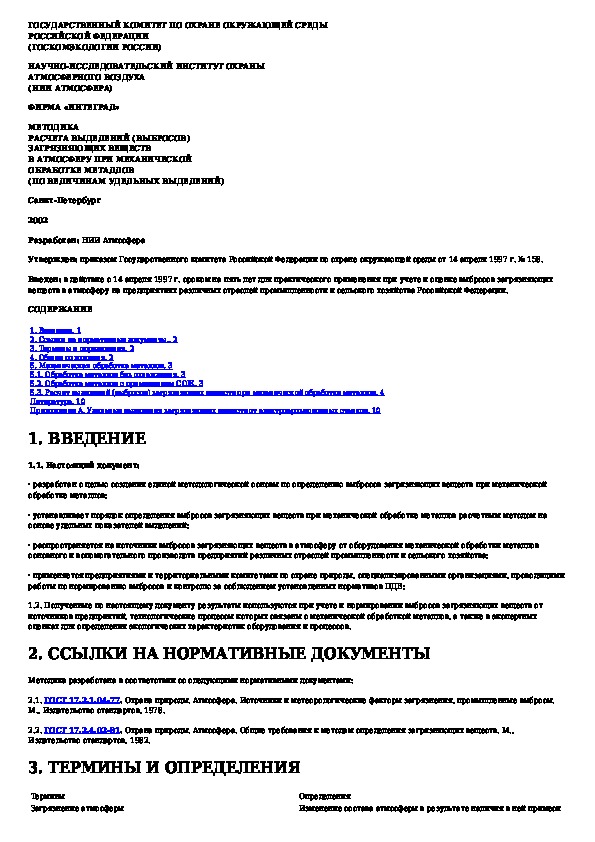 Наша цель состоит в том, чтобы предоставить вам быстрый доступ к содержанию документа Методика расчета выделений (выбросов) загрязняющих веществ в атмосферу при механической обработке металлов (по величинам удельны.
