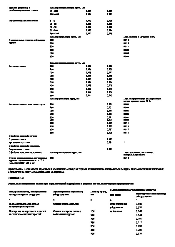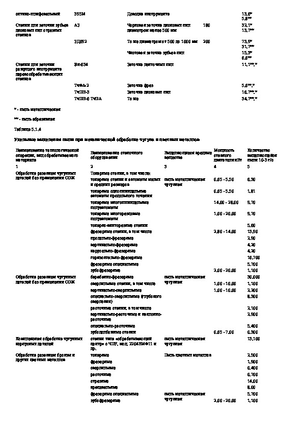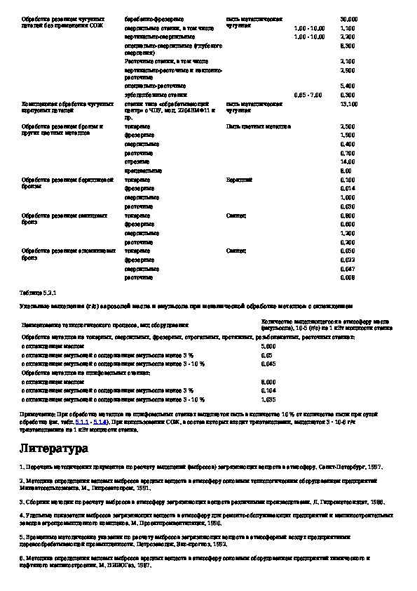 Методика расчета выделений (выбросов) загрязняющих веществ в атмосферу при механической обработке металлов (по величинам удельны