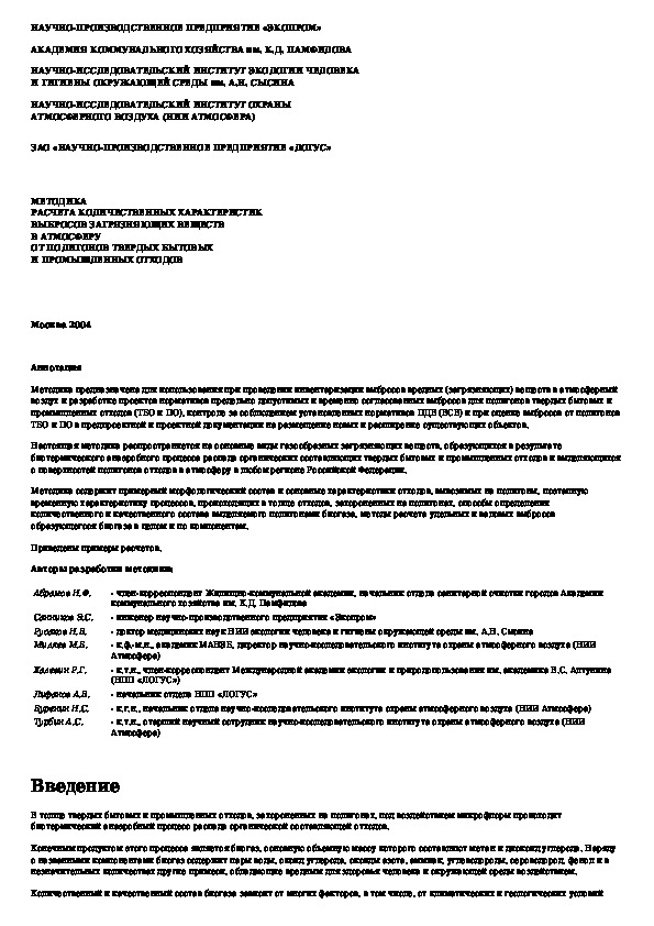 Наша цель состоит в том, чтобы предоставить вам быстрый доступ к содержанию документа Методика расчета количественных характеристик выбросов загрязняющих веществ в атмосферу от полигонов твердых бытовых и промышле.
