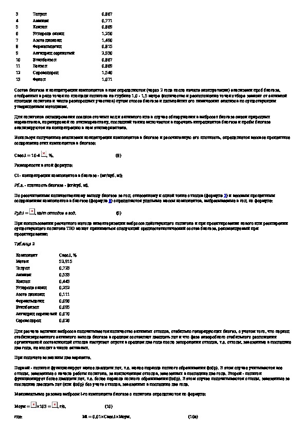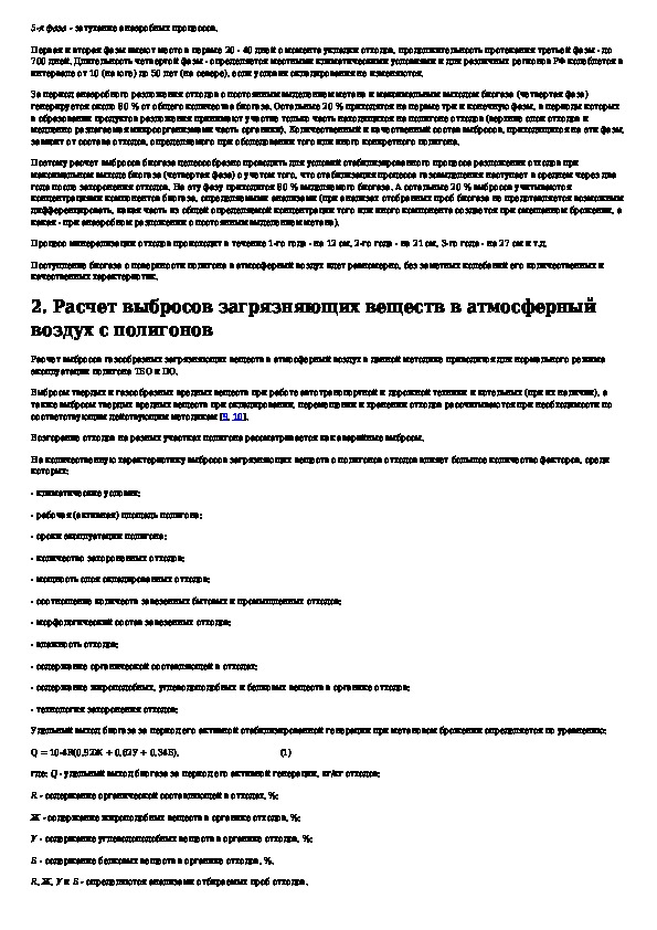 Методика расчета количественных характеристик выбросов загрязняющих веществ в атмосферу от полигонов твердых бытовых и промышле