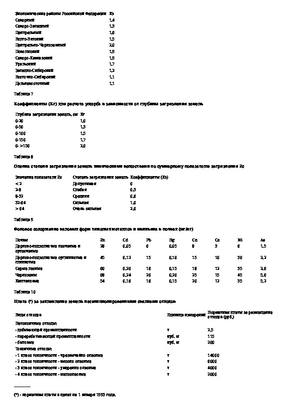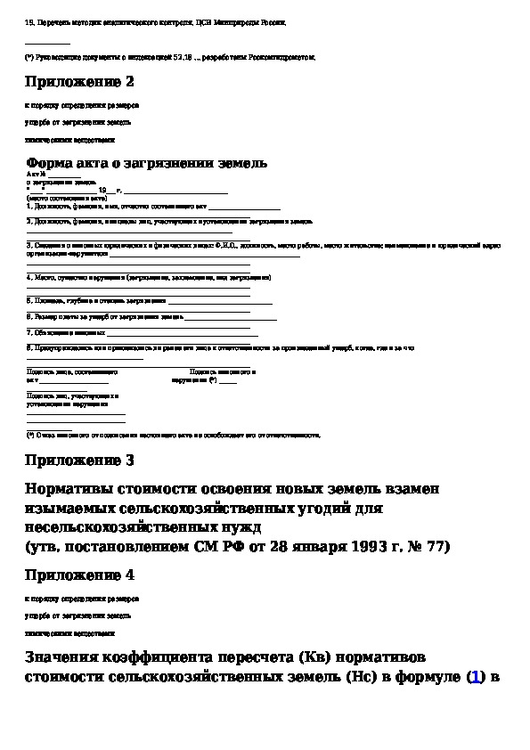 Порядок определения размеров ущерба от загрязнения земель химическими веществами