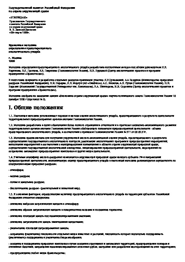 Временная методика определения предотвращенного экологического ущерба