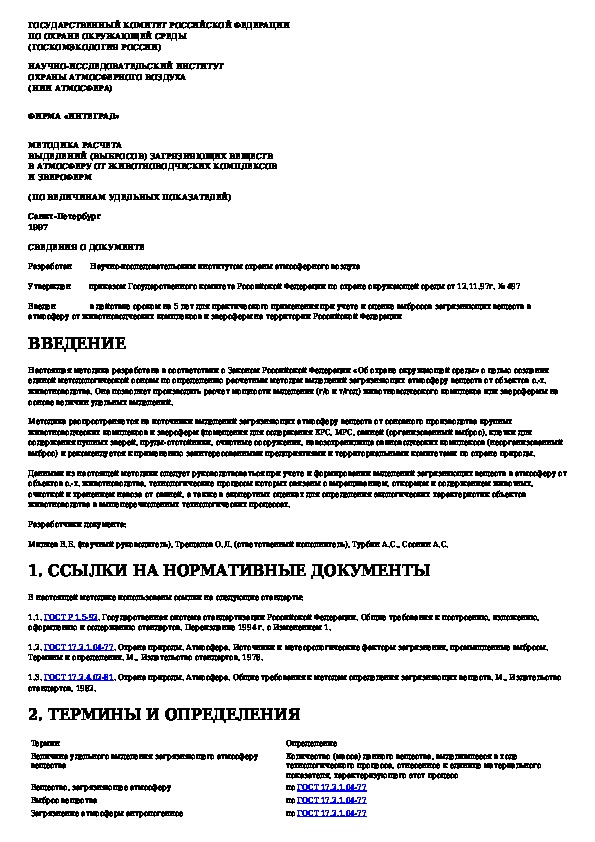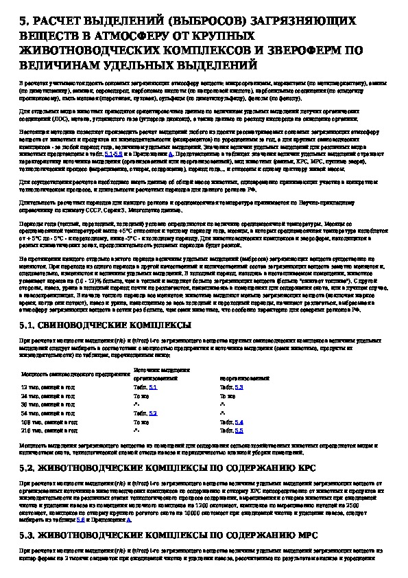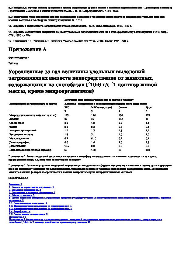 Наша цель состоит в том, чтобы предоставить вам быстрый доступ к содержанию документа Методика расчета выделений (выбросов) загрязняющих веществ в атмосферу от животноводческих комплексов и звероферм (по величинам у.