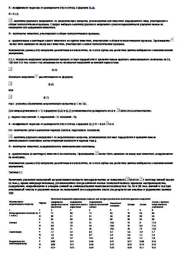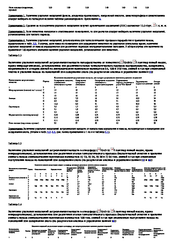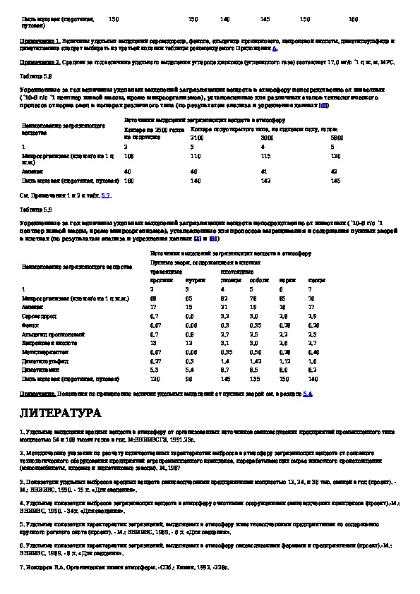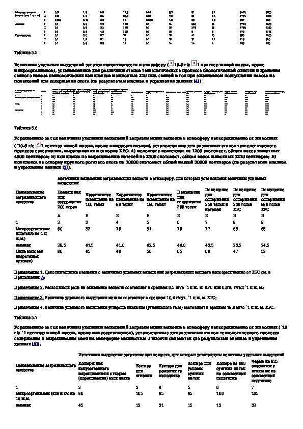 Методика расчета выделений (выбросов) загрязняющих веществ в атмосферу от животноводческих комплексов и звероферм (по величинам у