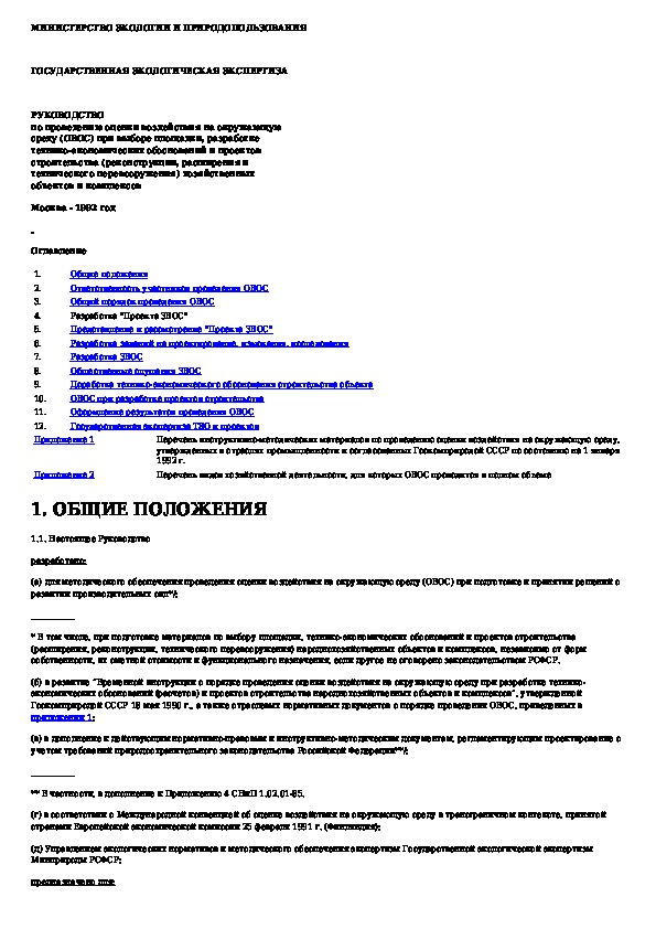 Наша цель состоит в том, чтобы предоставить вам быстрый доступ к содержанию документа Руководство по проведению оценки воздействия на окружающую среду (ОВОС) при выборе площадки, разработке ТЭО и проектов строительс.