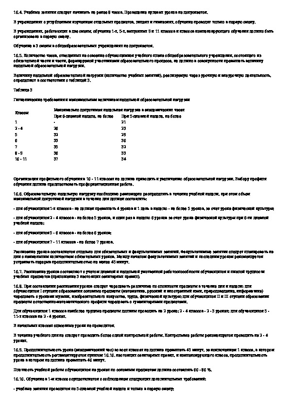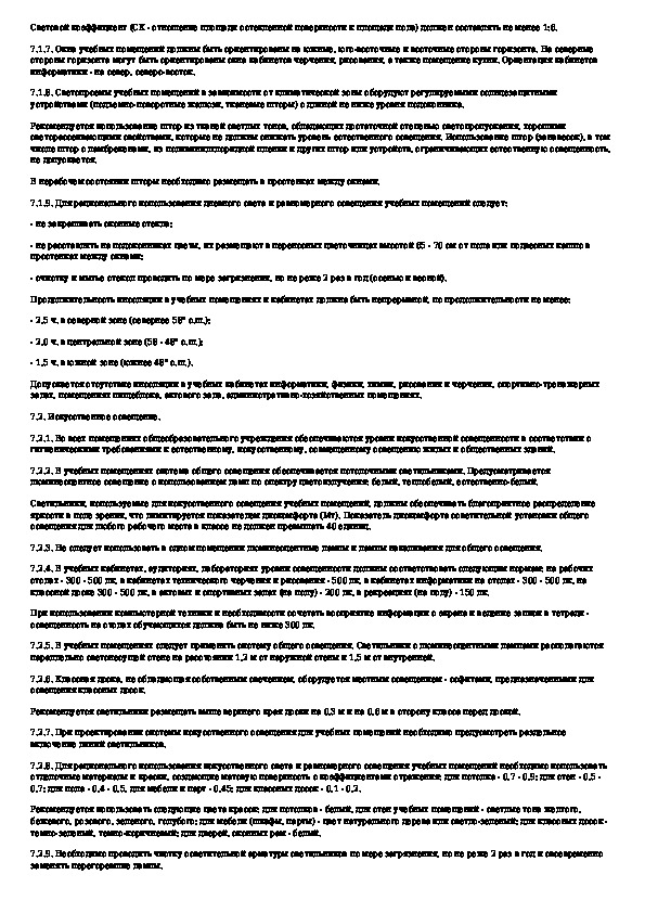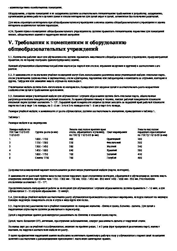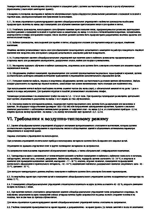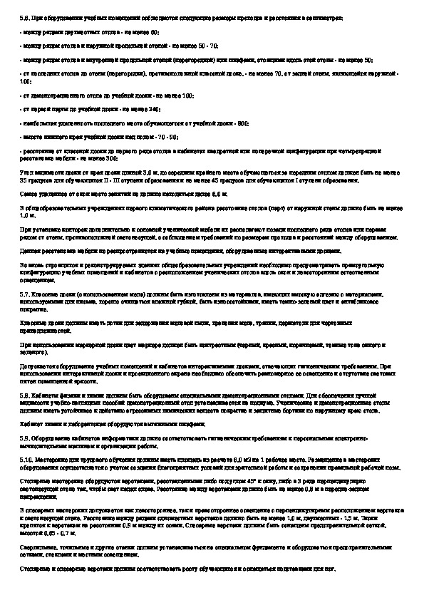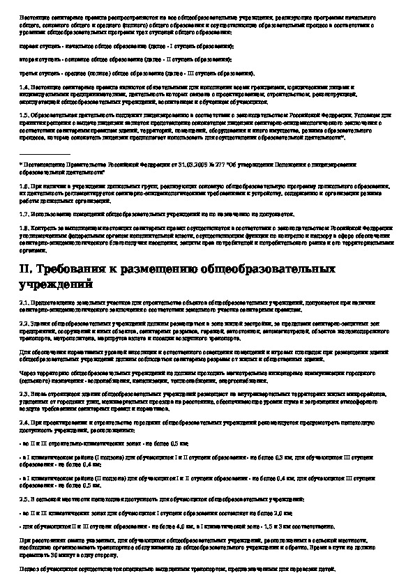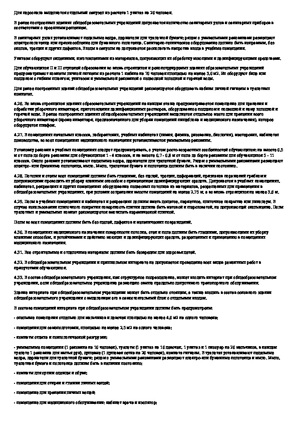 Санитарно-эпидемиологические требования к условиям и организации обучения в общеобразовательных учреждениях
