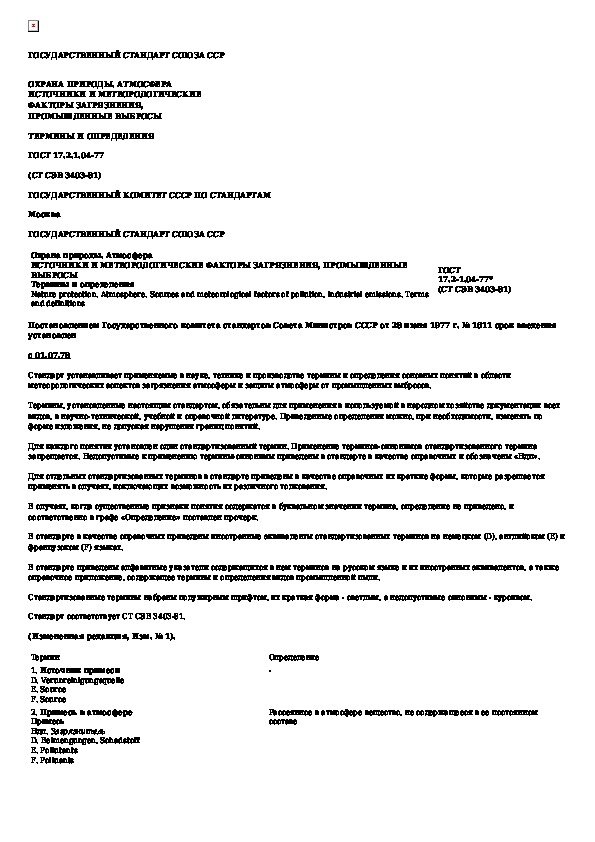 Наша цель состоит в том, чтобы предоставить вам быстрый доступ к содержанию документа Охрана природы. Атмосфера. Источники и метеорологические факторы загрязнения, промышленные выбросы. Термины и определения.
