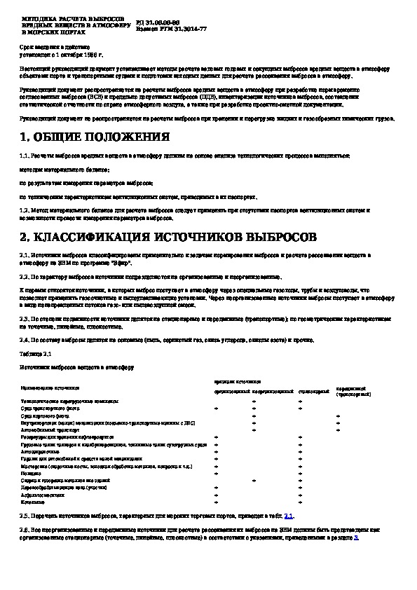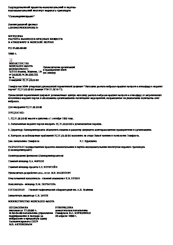 РД 31.06.06-86: Методика расчета выбросов вредных веществ в атмосферу в морских портах