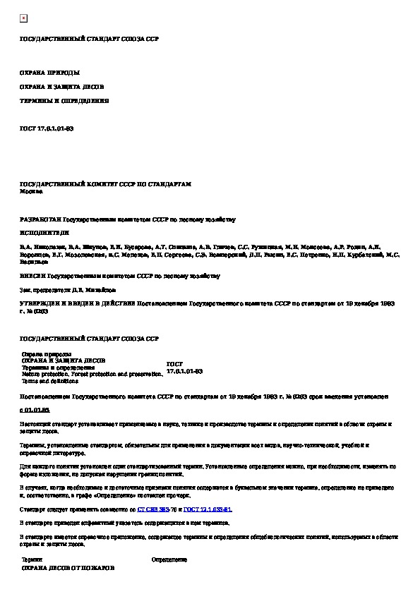 ГОСТ 17.6.1.01-83: Охрана природы. Охрана и защита лесов. Термины и определения