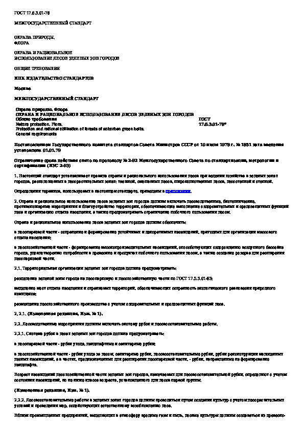 ГОСТ 17.6.3.01-78: Охрана природы. Флора. Охрана и рациональное использование лесов зеленых зон городов. Общие требования