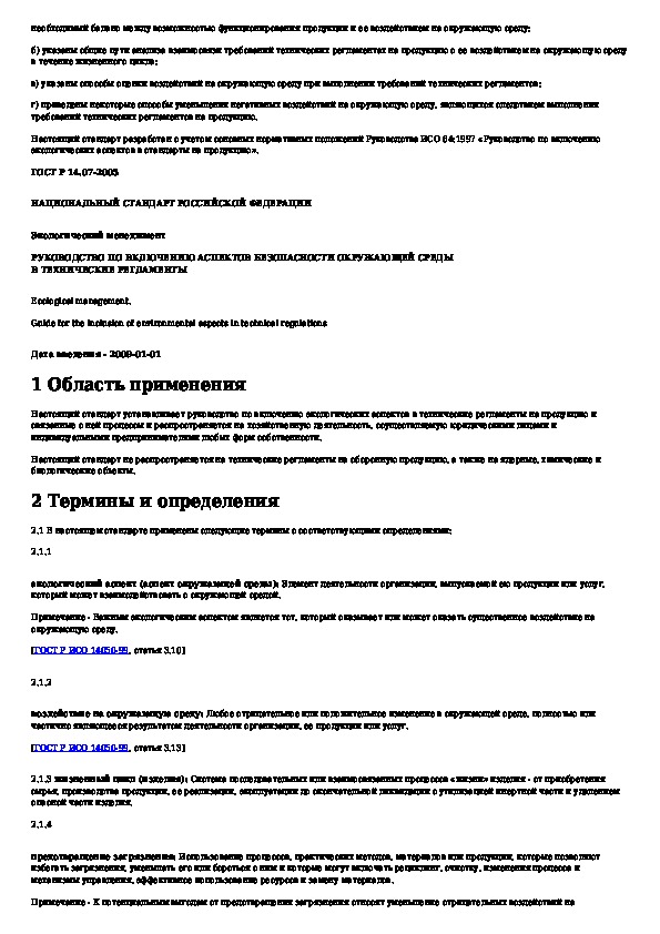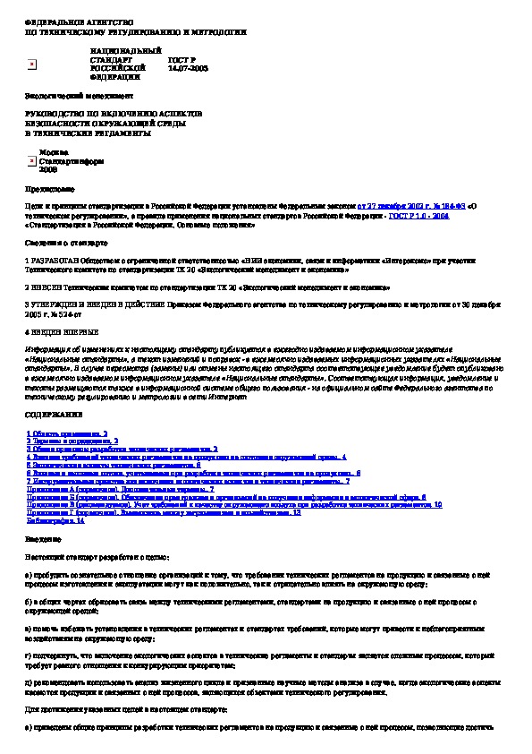 Наша цель состоит в том, чтобы предоставить вам быстрый доступ к содержанию документа Экологический менеджмент. Руководство по включению аспектов безопасности окружающей среды в технические регламенты.