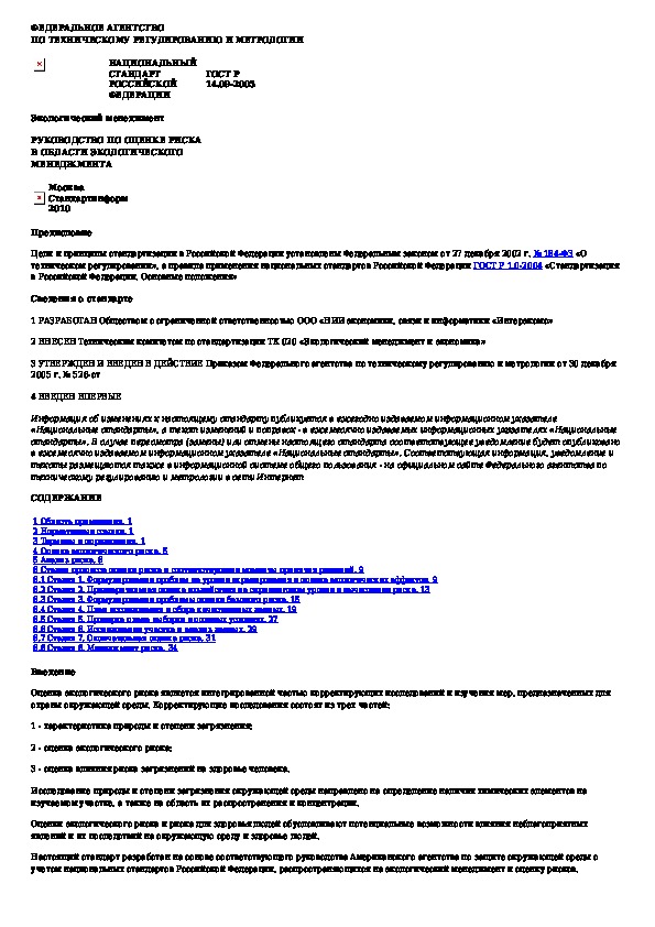 Наша цель состоит в том, чтобы предоставить вам быстрый доступ к содержанию документа Экологический менеджмент. Руководство по оценке риска в области экологического менеджмента.
