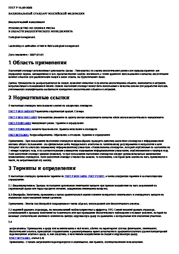 ГОСТ Р 14.09-2005: Экологический менеджмент. Руководство по оценке риска в области экологического менеджмента