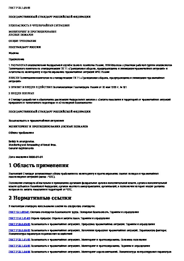 Наша цель состоит в том, чтобы предоставить вам быстрый доступ к содержанию документа Безопасность в чрезвычайных ситуациях. Мониторинг и прогнозирование лесных пожаров. Общие требования.