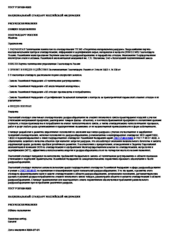 ГОСТ Р 52106-2003: Ресурсосбережение. Общие положения